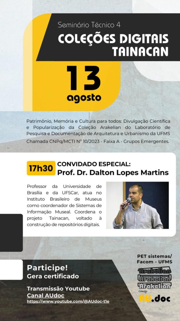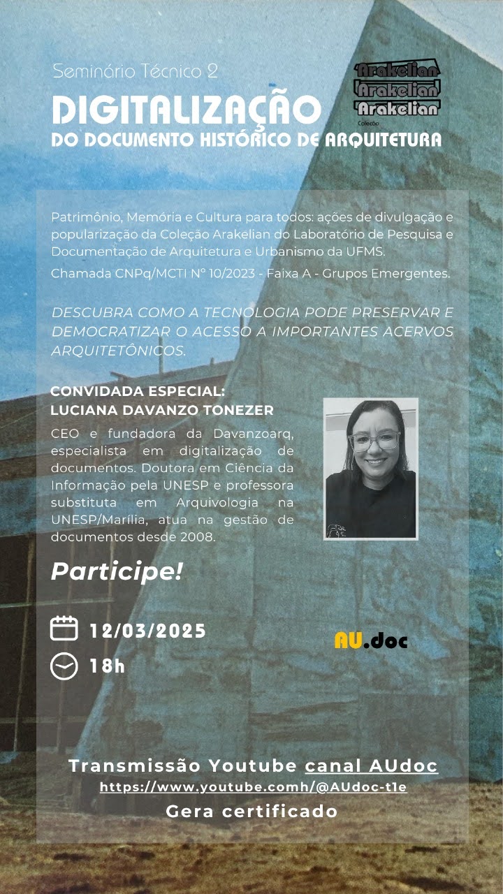 O AU.doc mantém em seu acervo uma coleção que inclui 200 pranchas de desenhos, 66 livros, 23 revistas, 2 pastas com projetos especiais, 2 álbuns de fotografias, 24 aquarelas emolduradas, maquetes e materiais de desenho técnico que pertenceram ao arquiteto Armenio Arakelian. Este projeto foi contemplado na Chamada CNPq/MCTI Nº 10/2023 e tem vigência até julho de 2025. A equipe conta com 6 professores, 22 estudantes de graduação em Arquitetura e Urbanismo, um profissional técnico da área de Arquivologia e a parceria do Laboratório Hipermídias, da USCS, SP. Os pesquisadores Ivo Leite Filho, Lia Brambilla e Franceli Guaraldo dão suporte ao projeto nas áreas de divulgação e popularização da Ciência e História e narrativas orais. Esta proposta representa um passo importante para a correção de assimetrias regionais quanto ao reconhecimento das leituras locais da Arquitetura Moderna na região centro-oeste.
